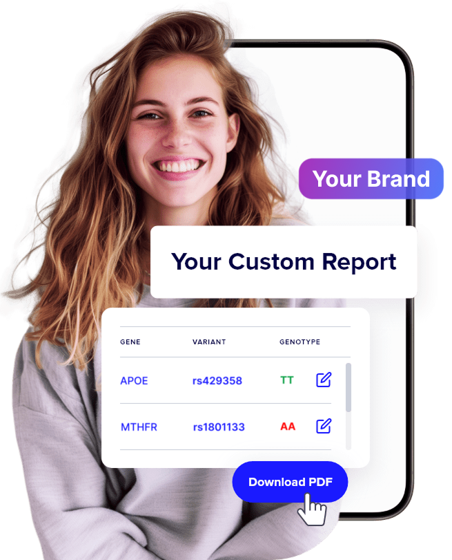 Our science team builds a white-labeled, clinical-grade genetic report based on you requirements and latest genomic research.